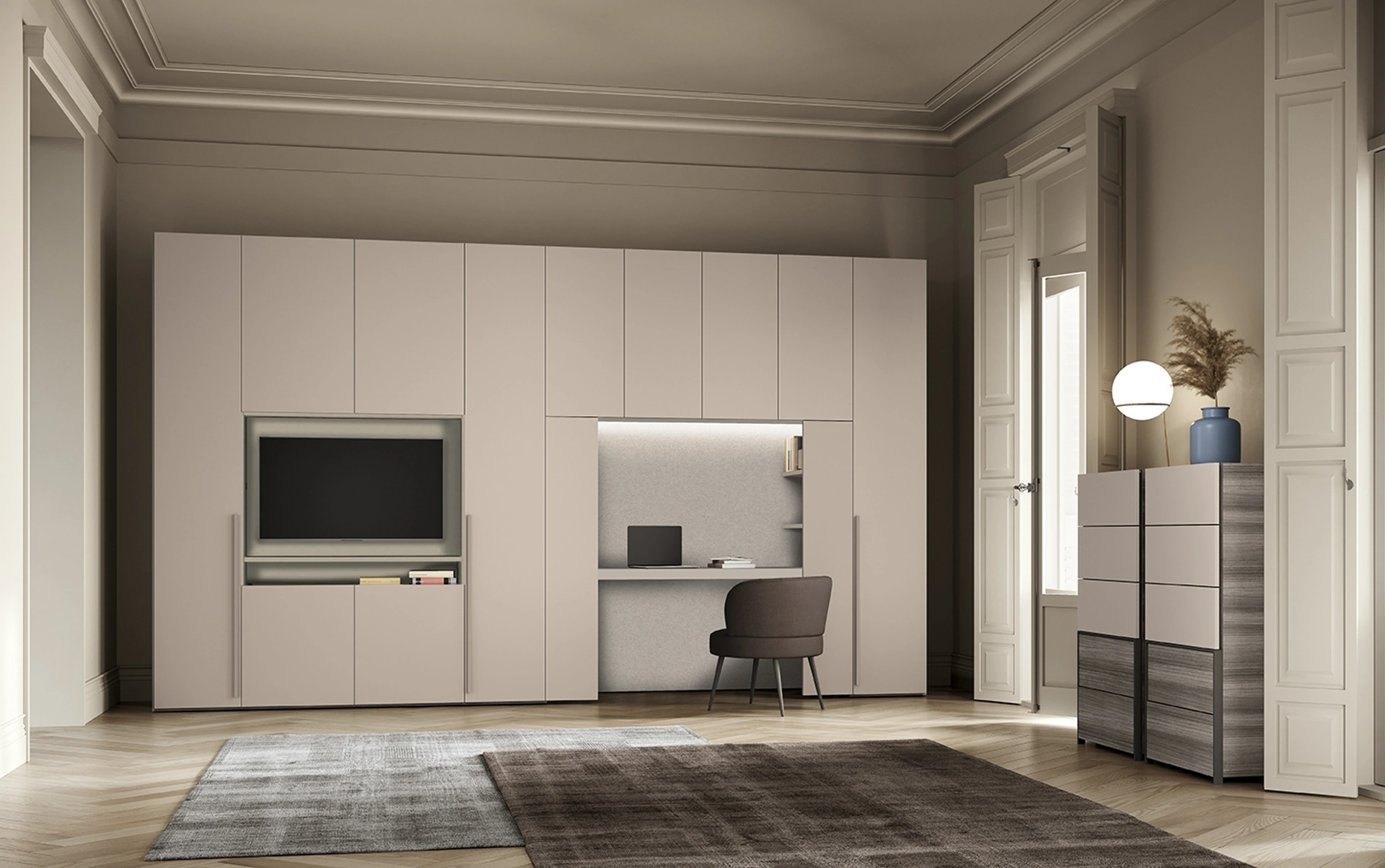 La zona del riposo è dedicata al riposo, deve quindi risultare ammobiliata al meglio e completa di mobili e complementi in grado di ricreare un'ambientazione sempre distensiva. Contattaci per info e preventivi e potrai completare la zona del riposo che hai sempre voluto grazie ad una diversificata disponibilità di contenitori moderni come quest'armadiatura in melaminico nella fotografia. Gli Armadi e le cabine armadio con ante battenti devono arredare la camera da letto assicurandoti una perfetta organizzazione degli spazi e un'esclusiva ricerca estetica. Armadio Concreta W07 di Colombini Casa: compila il form, contattaci e dai vita alla stanza del relax come l'avevi immaginata.