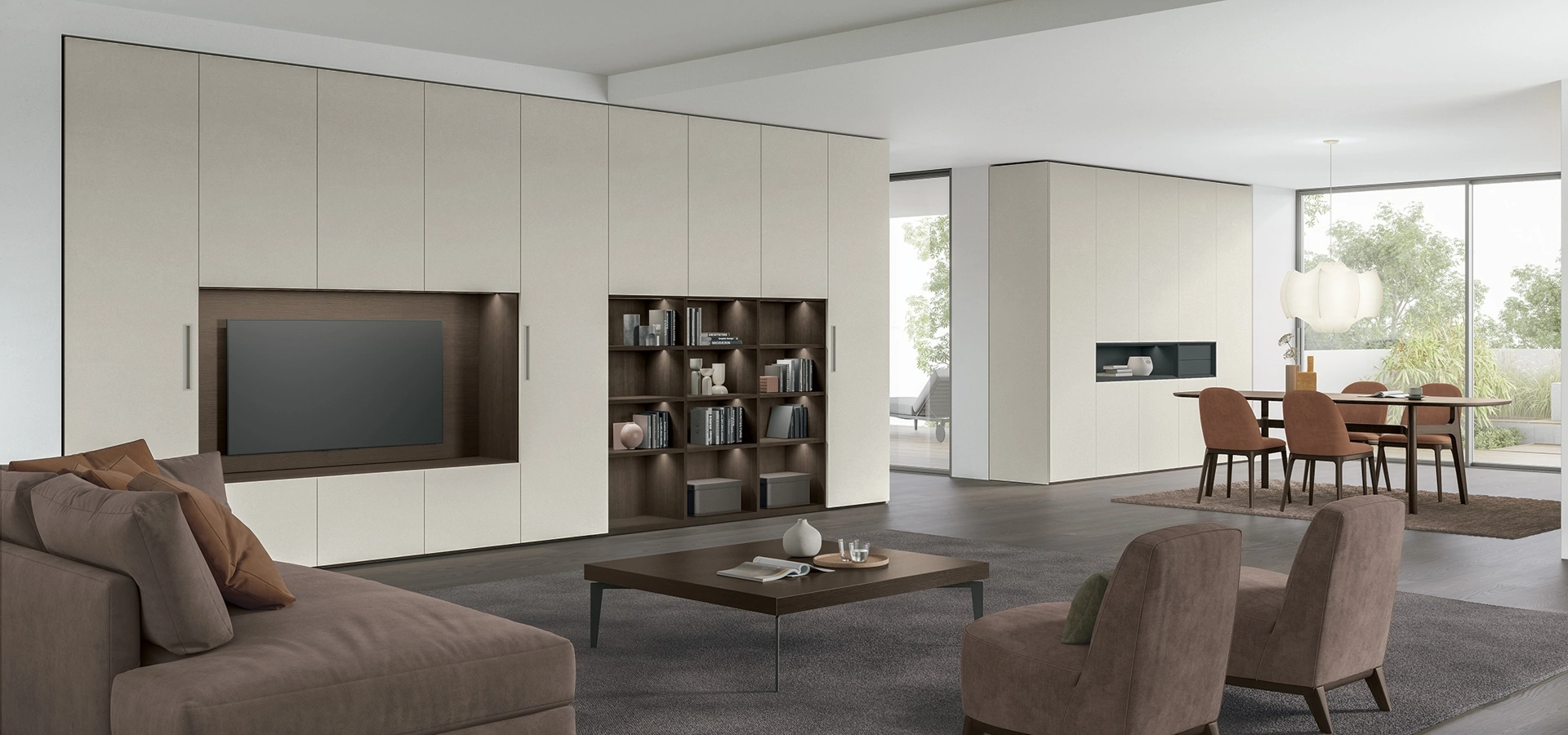 Se cerchi arredi salvaspazio e realizzabili su misura, contattaci e ottieni informazioni sull'Arredamento Casa dei migliori produttori. Anche in un soggiorno non generoso, questo tipo di arredo riesce a ottimizzare gli spazi usufruendo al meglio di ogni angolo e assicurando l'alta componibilità tipica delle soluzioni moderne. La Parete Attrezzata Logica Plus UNIT 01 di Tomasella in foto, con finitura in melaminico, risolve le più particolari esigenze abitative di spazio e stile senza rinunciare alla ricerca stilistica. Un po’ librerie, un po’ contenitori ed espositori: le Pareti Attrezzate sono ideali per arredare uno spazio dinamico e operativo.