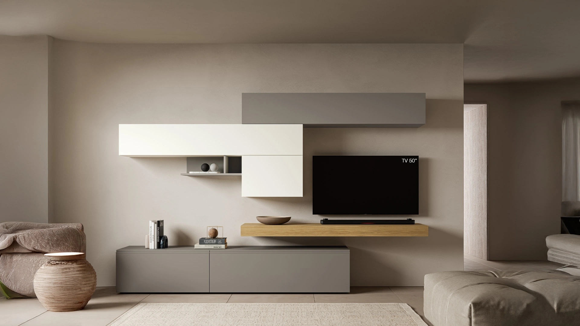 Per informazioni e preventivi sulla Parete Attrezzata Pratico PTG413 di SantaLucia nella fotografia contattaci! Il modello proposto è realizzato in melaminico, ma grazie ad una vasta gamma di texture, cromie e conformazioni, potrà adattarsi a stili di ogni genere. Questa parete attrezzata è una delle soluzioni della firma e ti permetterà di allestire la zona giorno secondo le più personali problematiche abitative. Attraverso un gioco dinamico di accostamenti fra elementi a giorno o vani chiusi, le Pareti Attrezzate moderne arredano il living sfruttando bene ogni spazio.